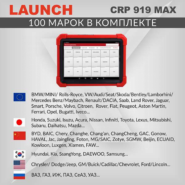Диагностический мультимарочный сканер Launch CRP919 MAX