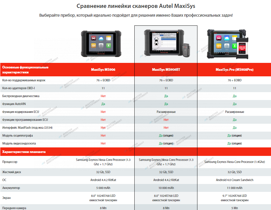 Отличия MaxiSYS MS906BT от MaxiSYS MS906: