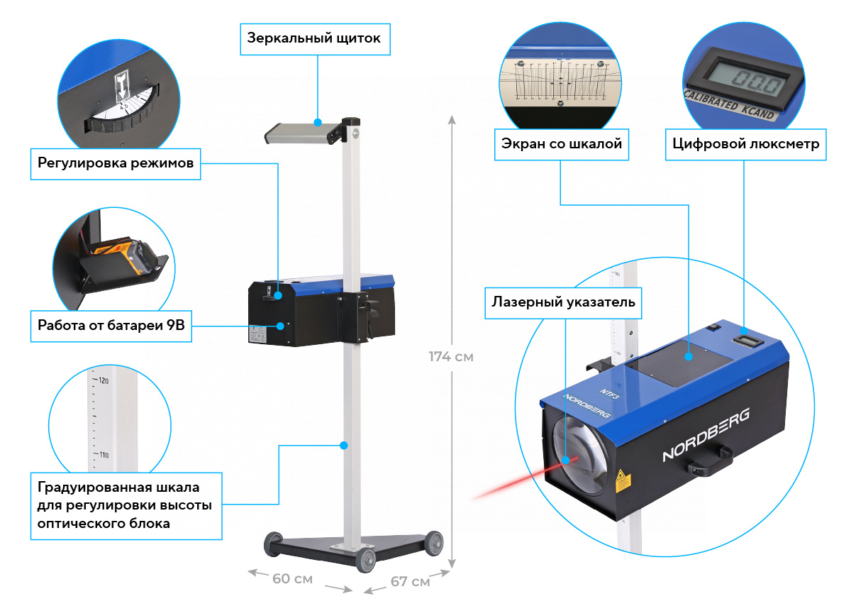 Устройство для проверки и регулировки света фар NORDBERG NTF3