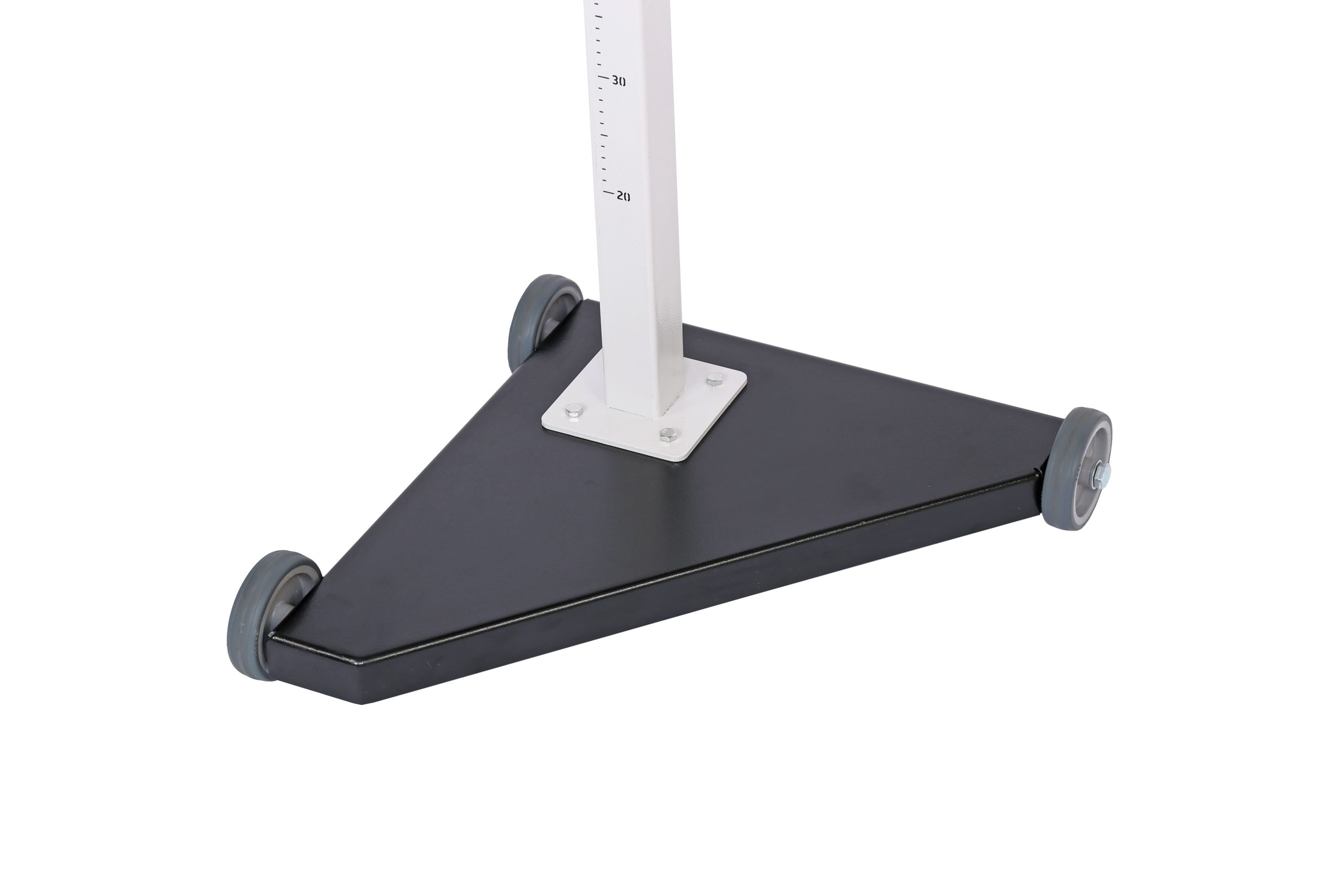 - Т-образное устойчивое основание, оснащенное тремя колесами на прорезиненной основе