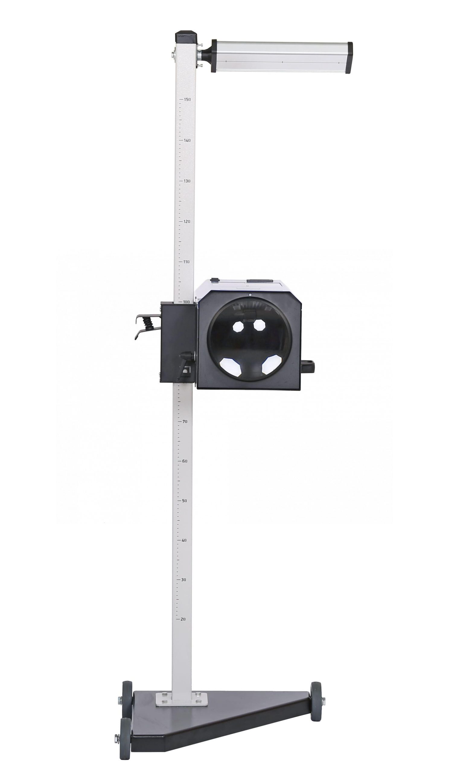 - Вертикальная металлическая градуированная стойка со шкалой и значениями высоты для точного позиционирования оптического блока относительно фары автомобиля