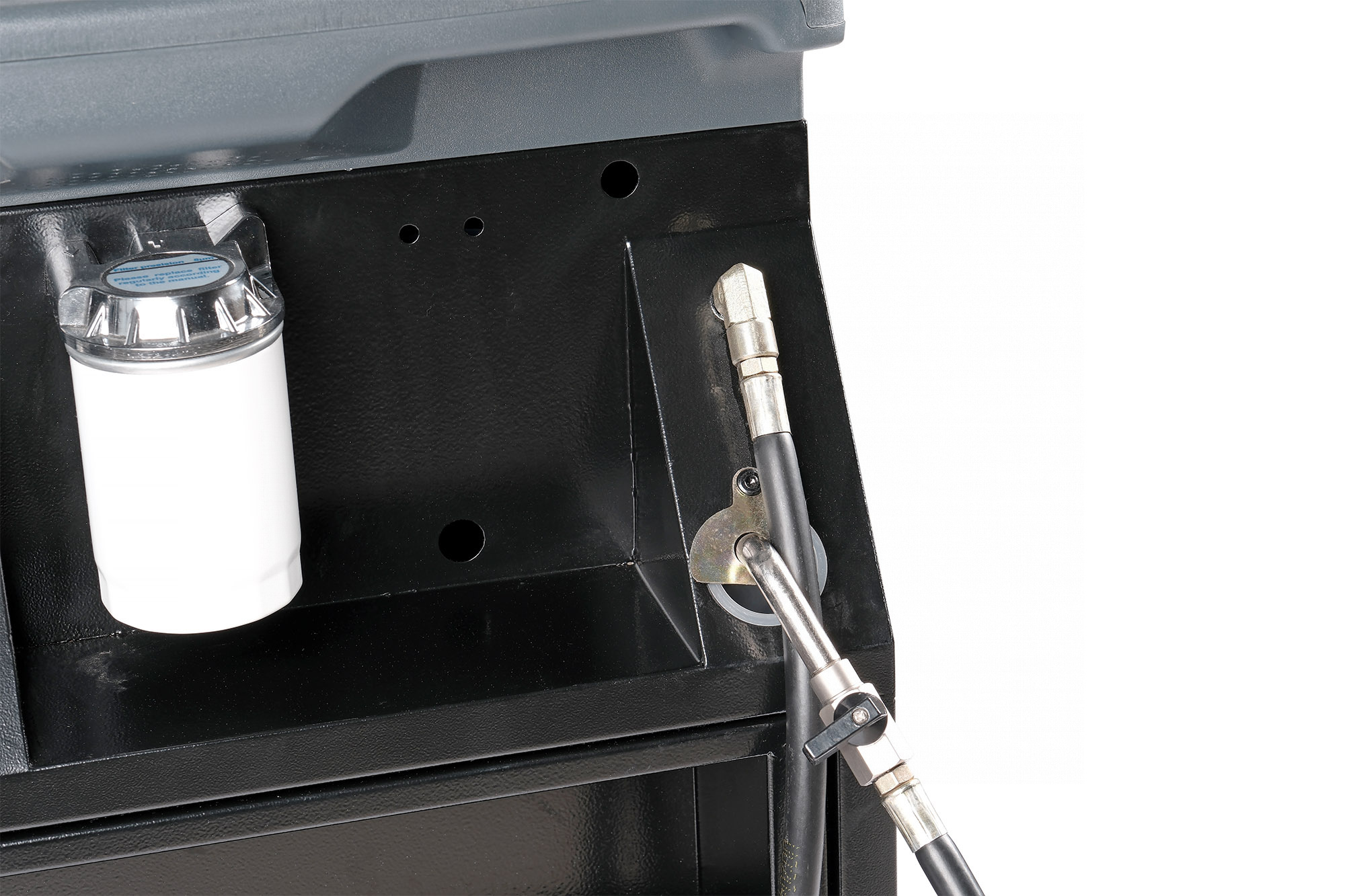 Установка не позволяет начать процесс замены в случае отсутствия нового масла в заправочной емкости или превышения уровня отработанной жидкости в сливной емкости.