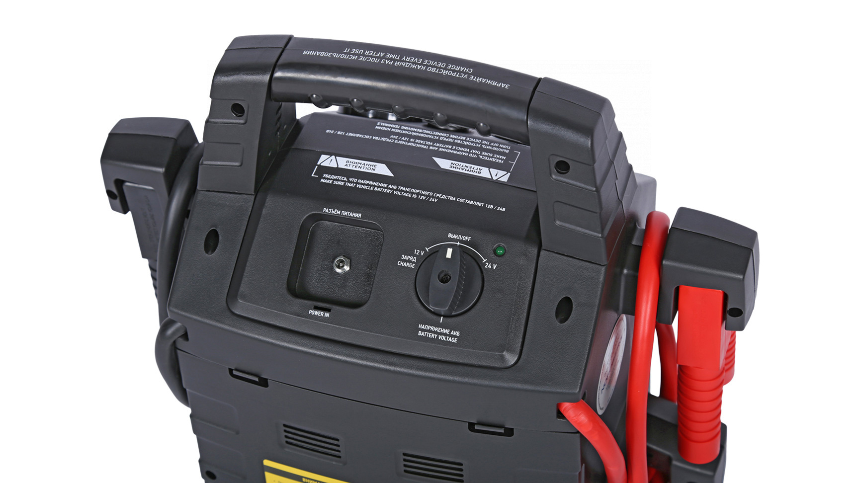 Устройство предназначено для быстрого запуска двигателей транспортных средств с аккумуляторной батареей 12 В или 24 В в условиях, когда аккумулятор транспортного средства разряжен.