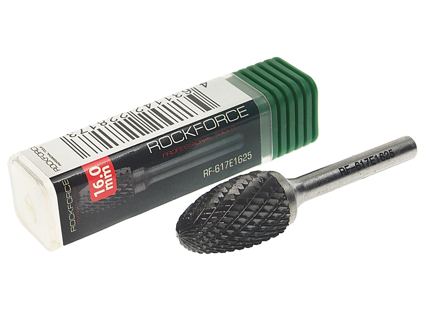 Шарошка RF-617E1625 сферическая вытянутая по металлу(Ø 16мм,Ø хвостовика 6мм),в пластиковом футляре ROCKFORCE /1/250