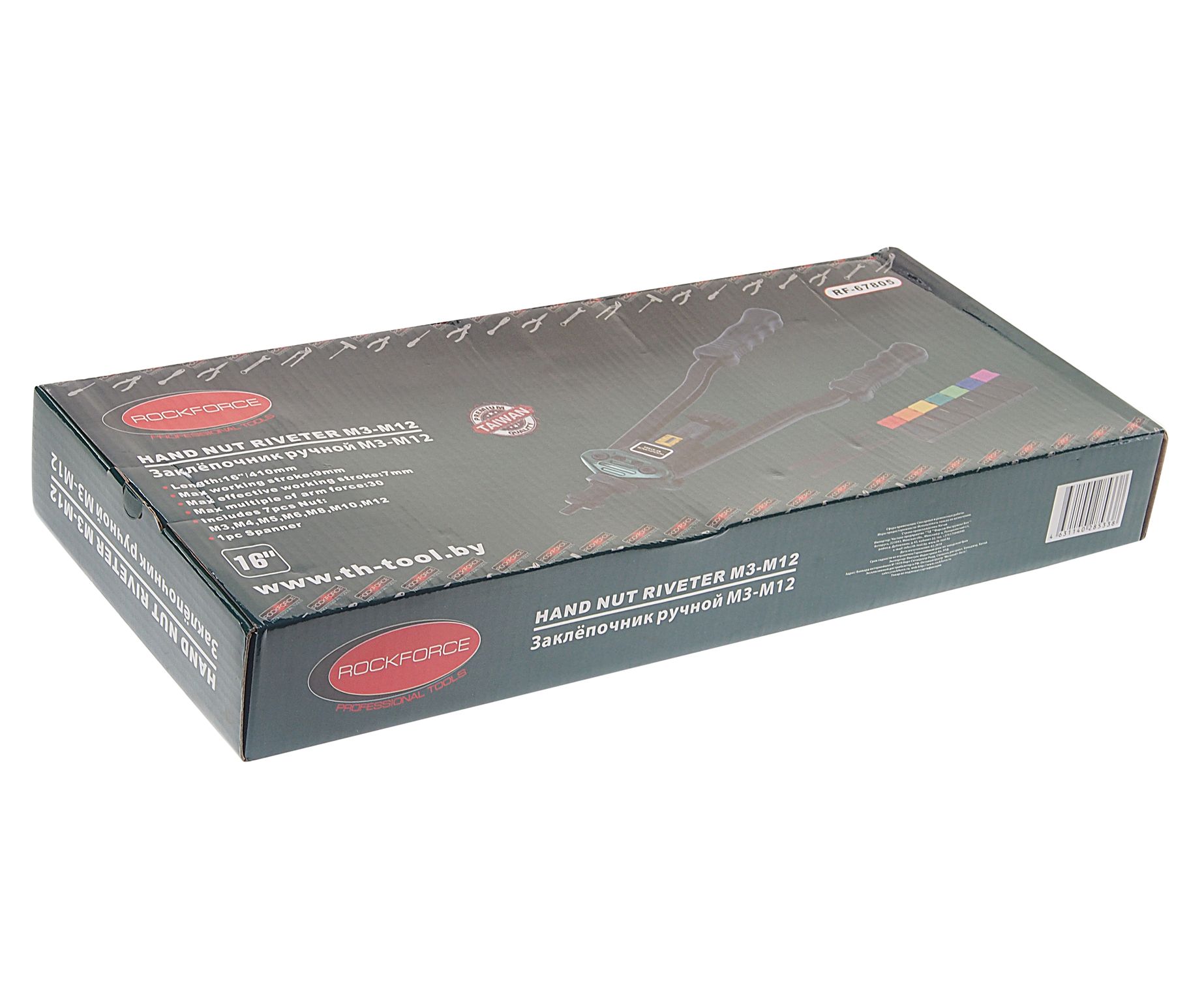Заклепочник RF-67805 двуручный резьбовой усиленный со шкалой затяжки от 0-10мм(L — 380мм, резьбовые адаптеры — М3, М4, М5, М6, М8, М10, М12) ROCKFORCE