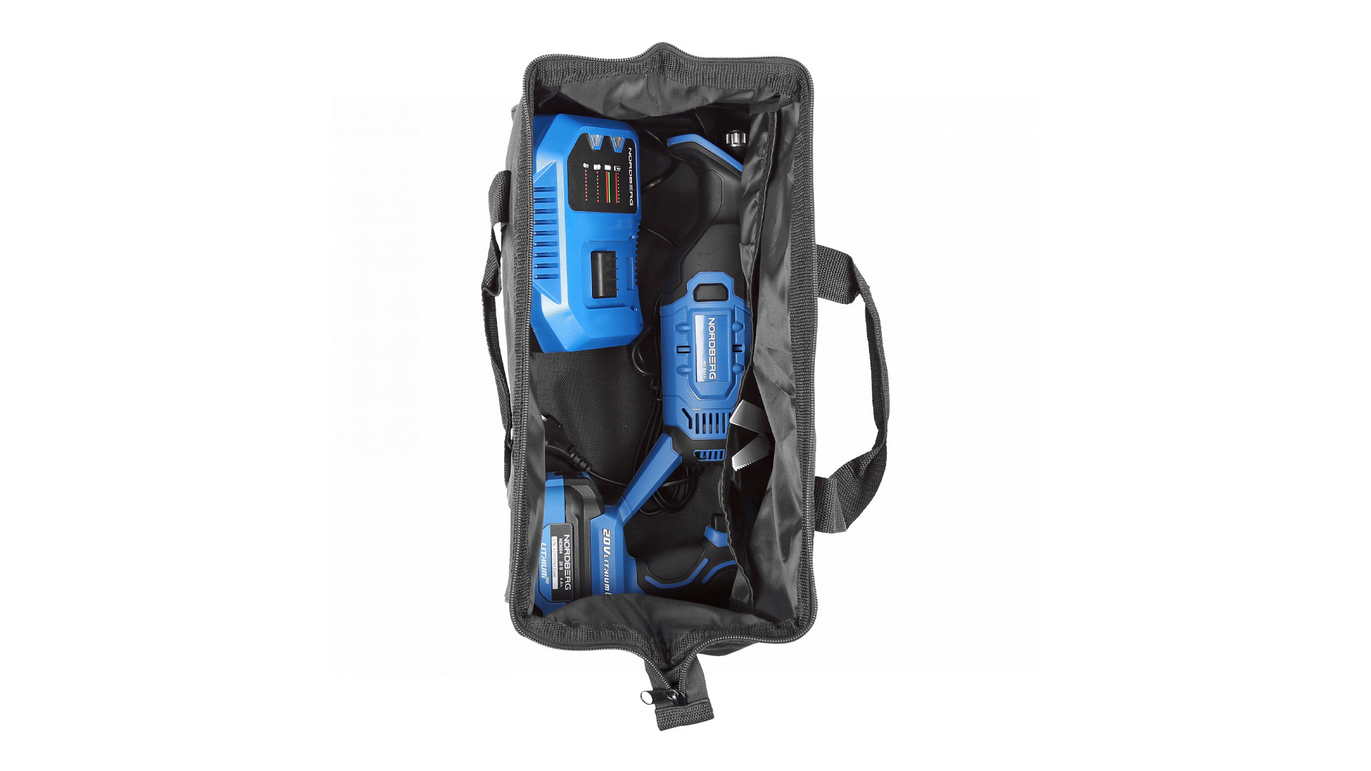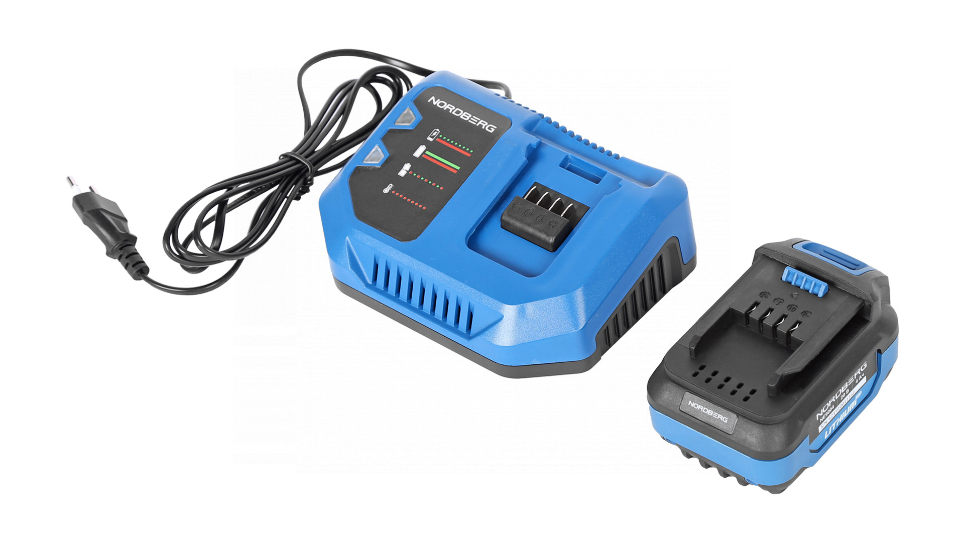 - Литиево-ионный аккумулятор емкостью 4 А·ч и напряжением 20 В, совместимый с аккумуляторным инструментом NORDBERG*