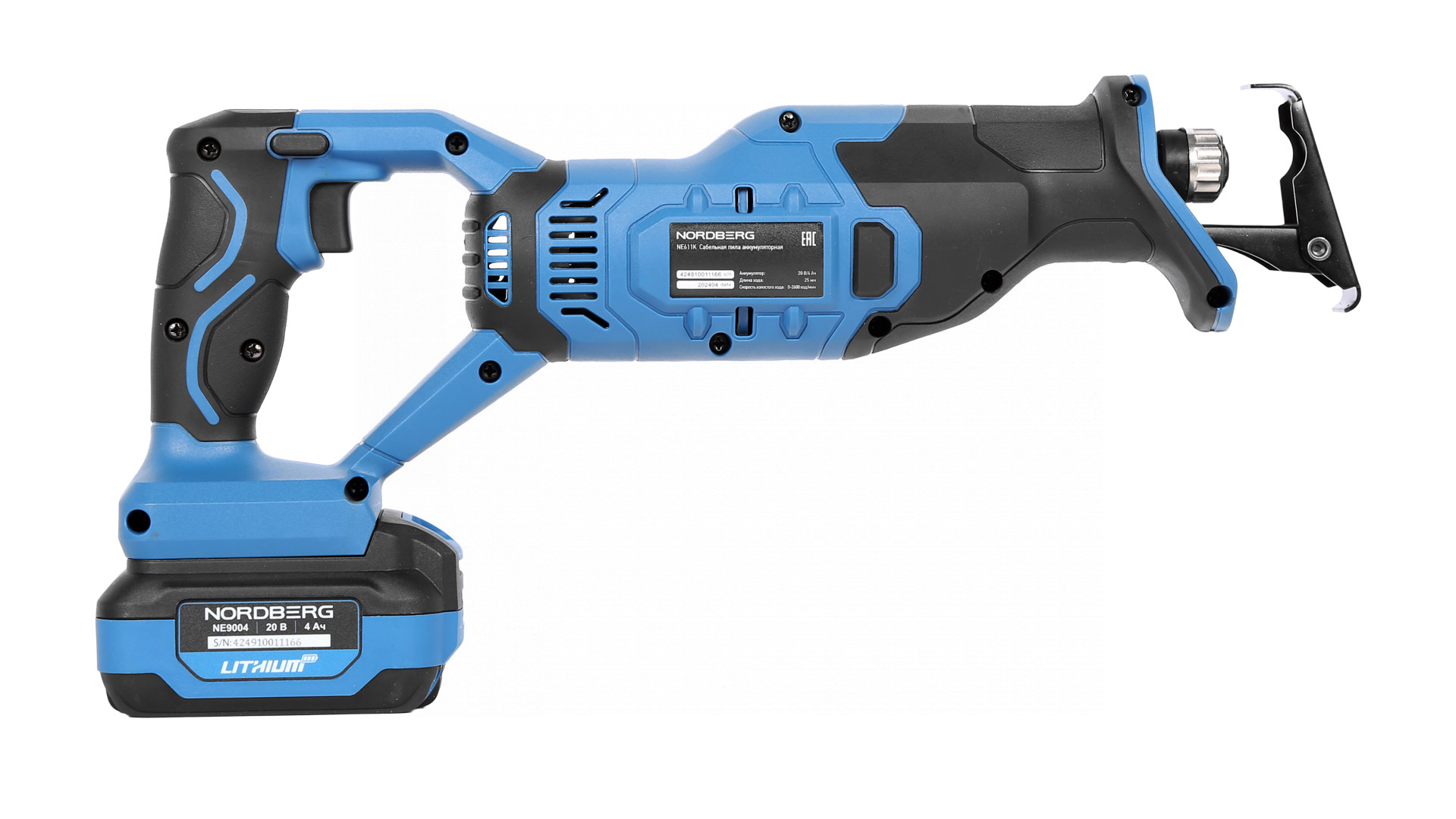 Сабельная пила аккумуляторная NORDBERG NE611K – универсальный режущий инструмент для выполнения ремонтных и строительных работ в автомастерских, СТО, производственных предприятиях и для бытового использования.