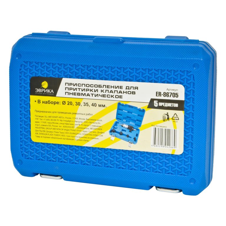 Приспособление для притирки клапанов пневматическое диаметр 20, 30, 35, 40мм, в кейсе 5 предметов ЭВРИКА. Применяется для быстрого снятия материала