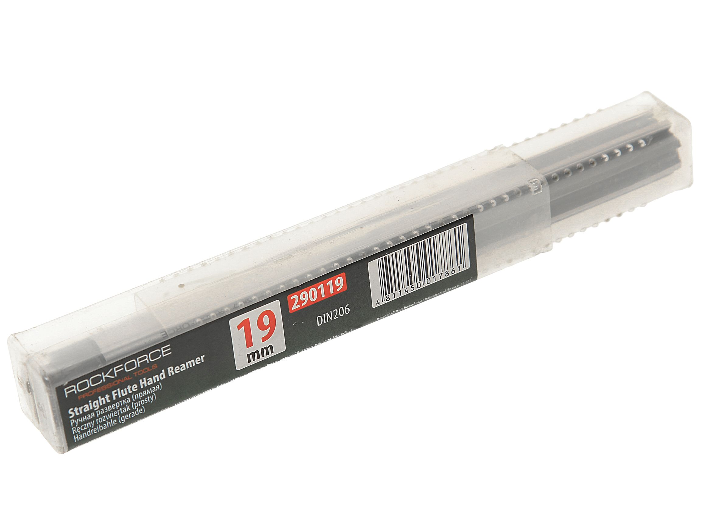 Развертка RF-290119 ручная (прямая) 19мм, в пластиковом футляре ROCKFORCE /1/50