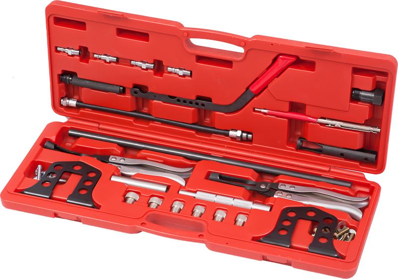 Универсальный рассухариватель клапанов МАСТАК 103-10019C поставляется с комплектом дополнительных приспособлений, которые позволяют применять его для двигателей большинства мировых марок автомобилей.