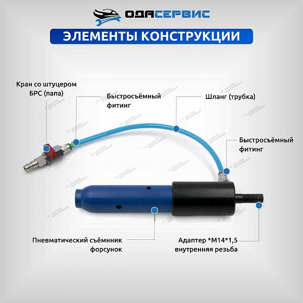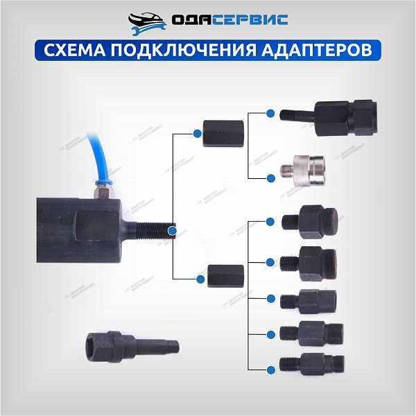 Съемник дизельных форсунок, пневматический с комплектом адаптеров ОДА Сервис ODA-3204B