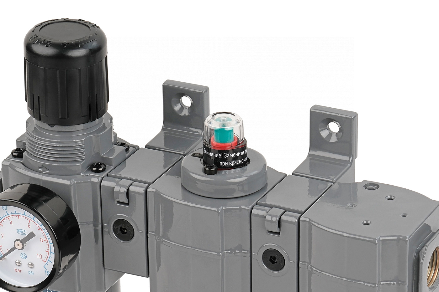 Фильтр тонкой очистки с пропускной способностью 0,01 микрон задерживает мельчайшие частицы пыли, пары воды и масла и силикагелевого осушителя.