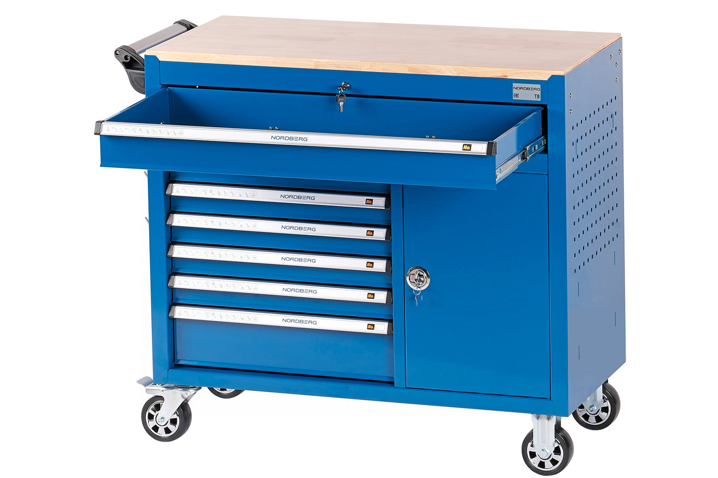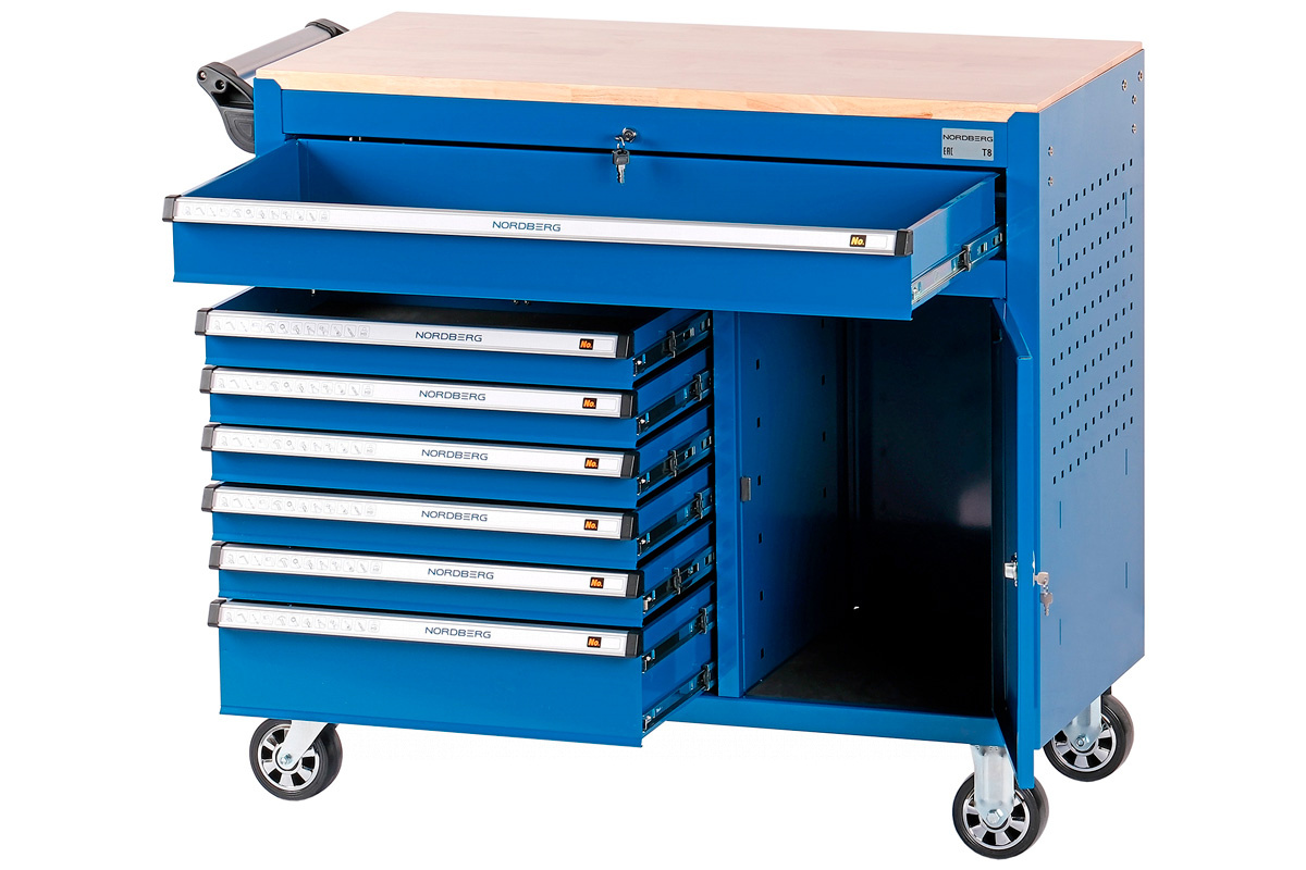 Тележка инструментальная NORDBERG T8 с выдвижными ящиками – для удобства работы и хранения инструмента в автосервисах, СТО и частных гаражах.