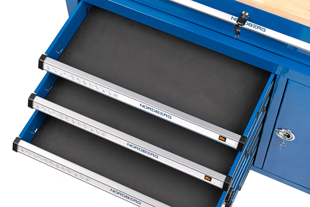 - Выдвижные ящики с мягкой шумопоглощающей подложкой из материала EVA, исключающей дребезжание металлического инструмента во время передвижения тележки