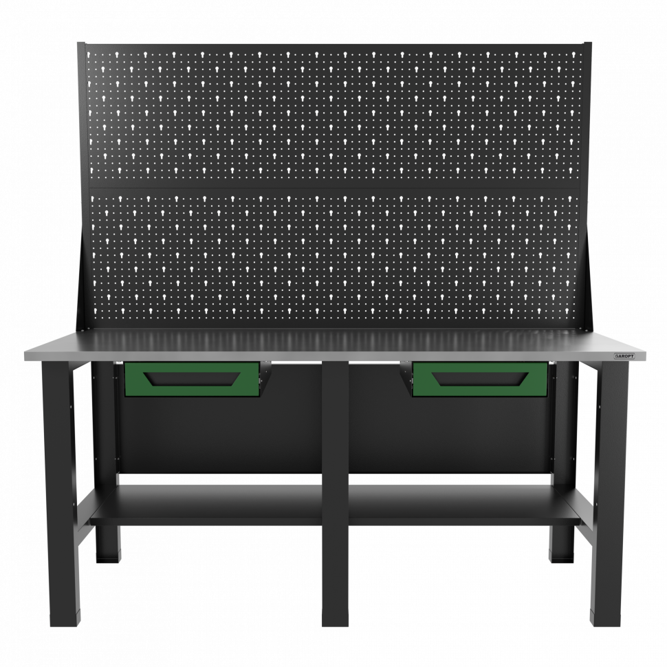 Верстак бестумбовый с двумя экранами и двумя ящиками, серый/ Стол для слесарных работ 1800*700 GAROPT, Gt1800STY1Y1PP2.grey Верстак бестумбовый с двумя экранами и двумя ящиками, зеленый/ Стол для слесарных работ 1800*700 GAROPT, Gt1800STY1Y1PP2.green