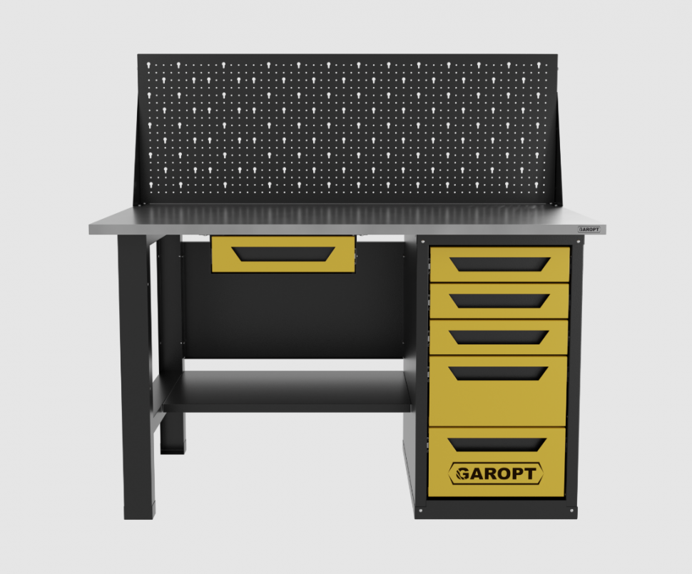 Верстак однотумбовый 5 ящиков с экраном и ящиком, желтый 1400*700 Garopt, GT1400STY1Y5PP.yell