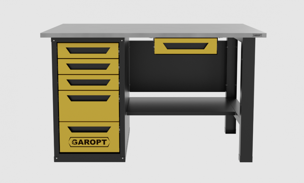 Верстак с ящиком однотумбовый 5 ящиков, желтый 1400*700 Garopt, GT1400STY1Y5.yell