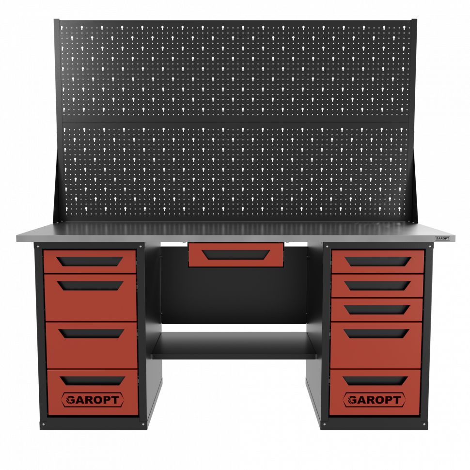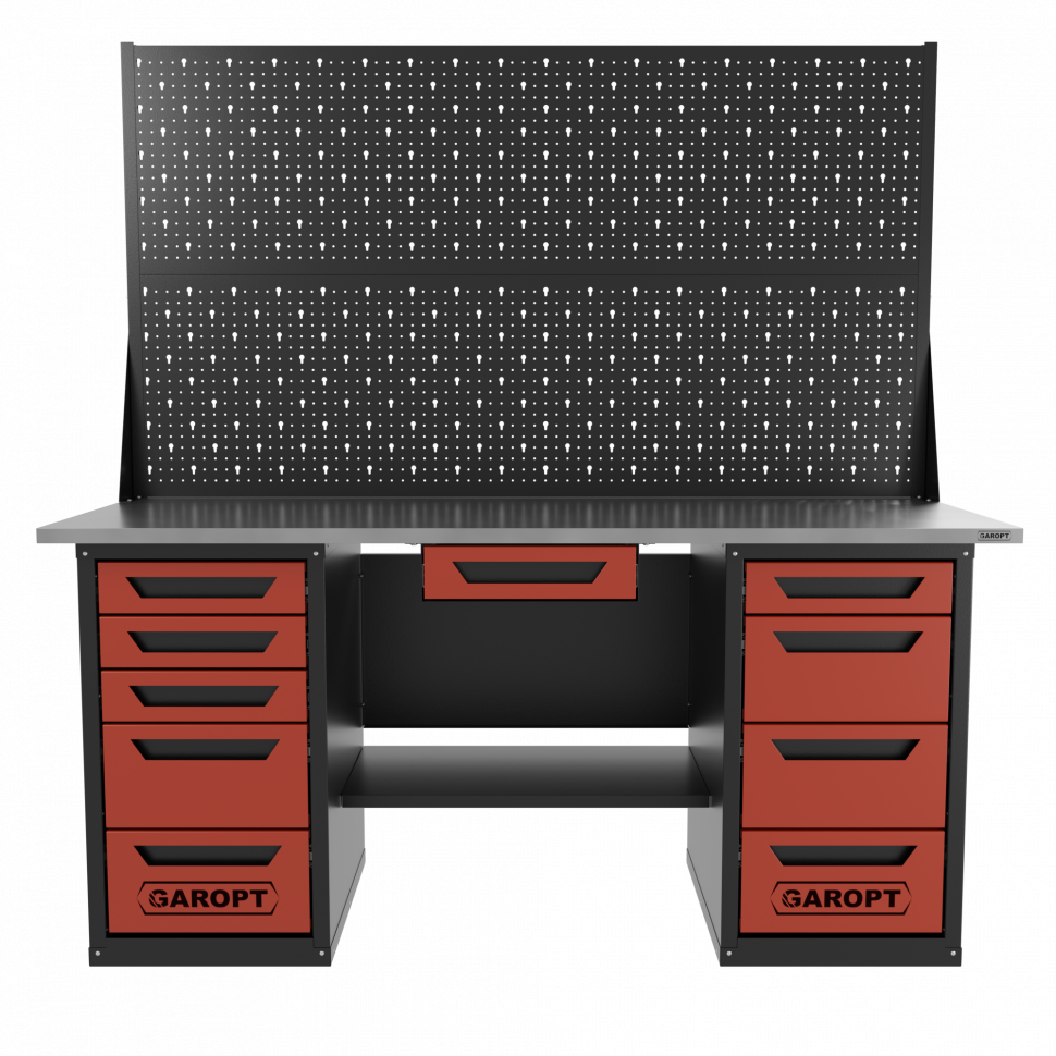 Верстак двухтумбовый 4 ящиков /5 ящиков с двумя экранами и ящиком, 1800*700 красный GAROPT, GT1800Y1Y4Y5PP2.red