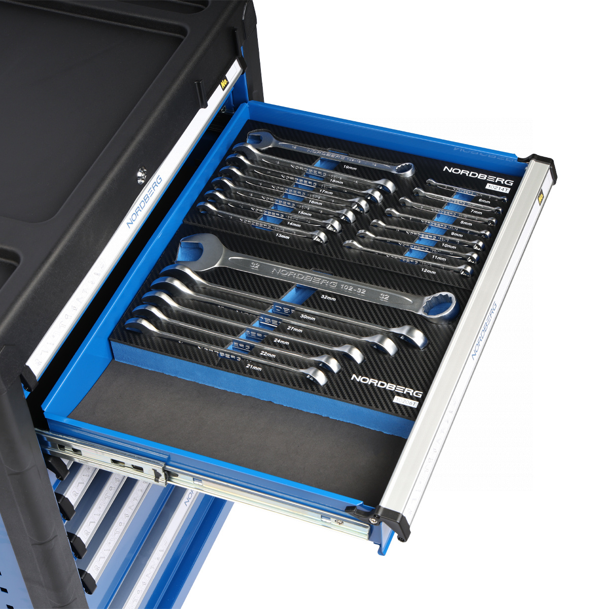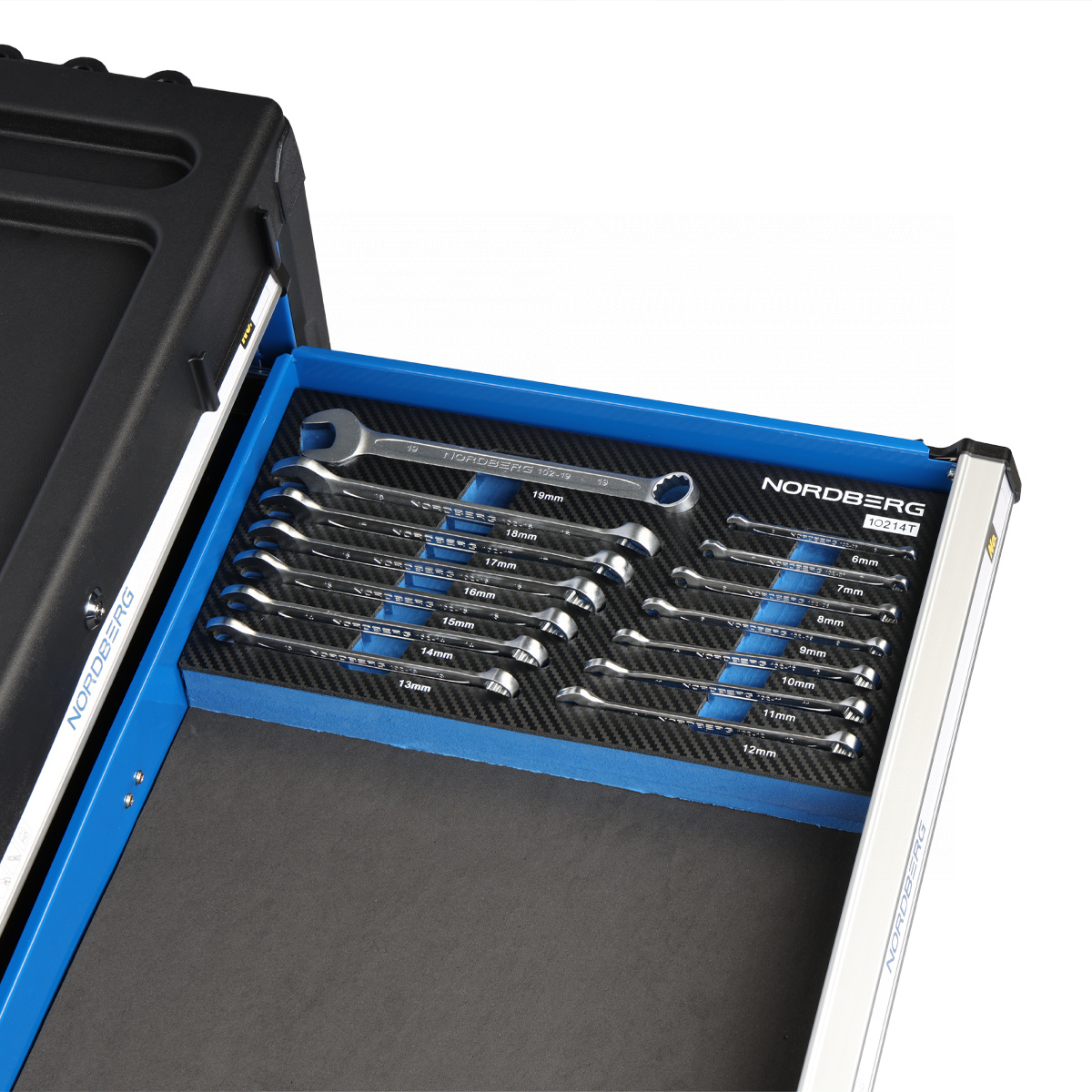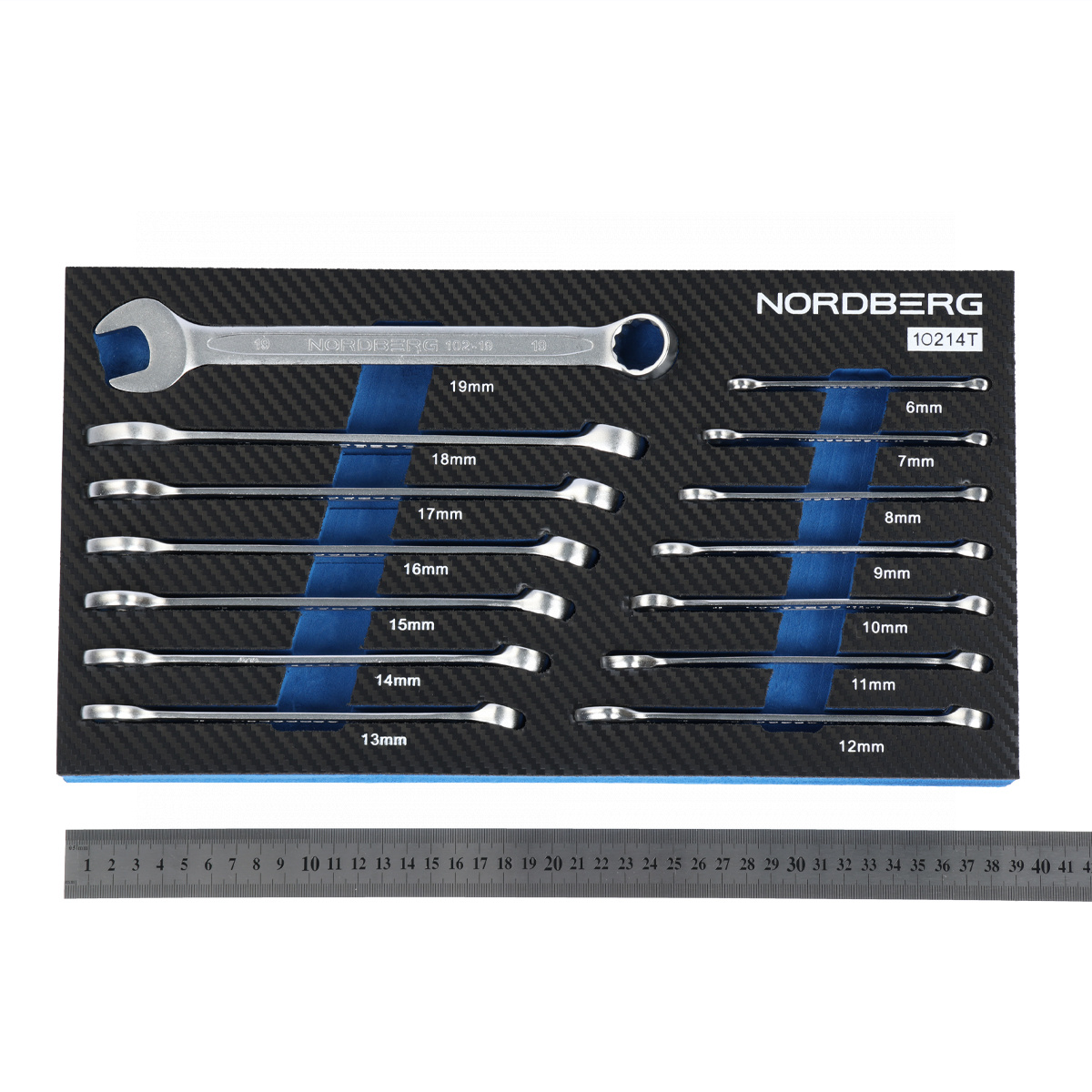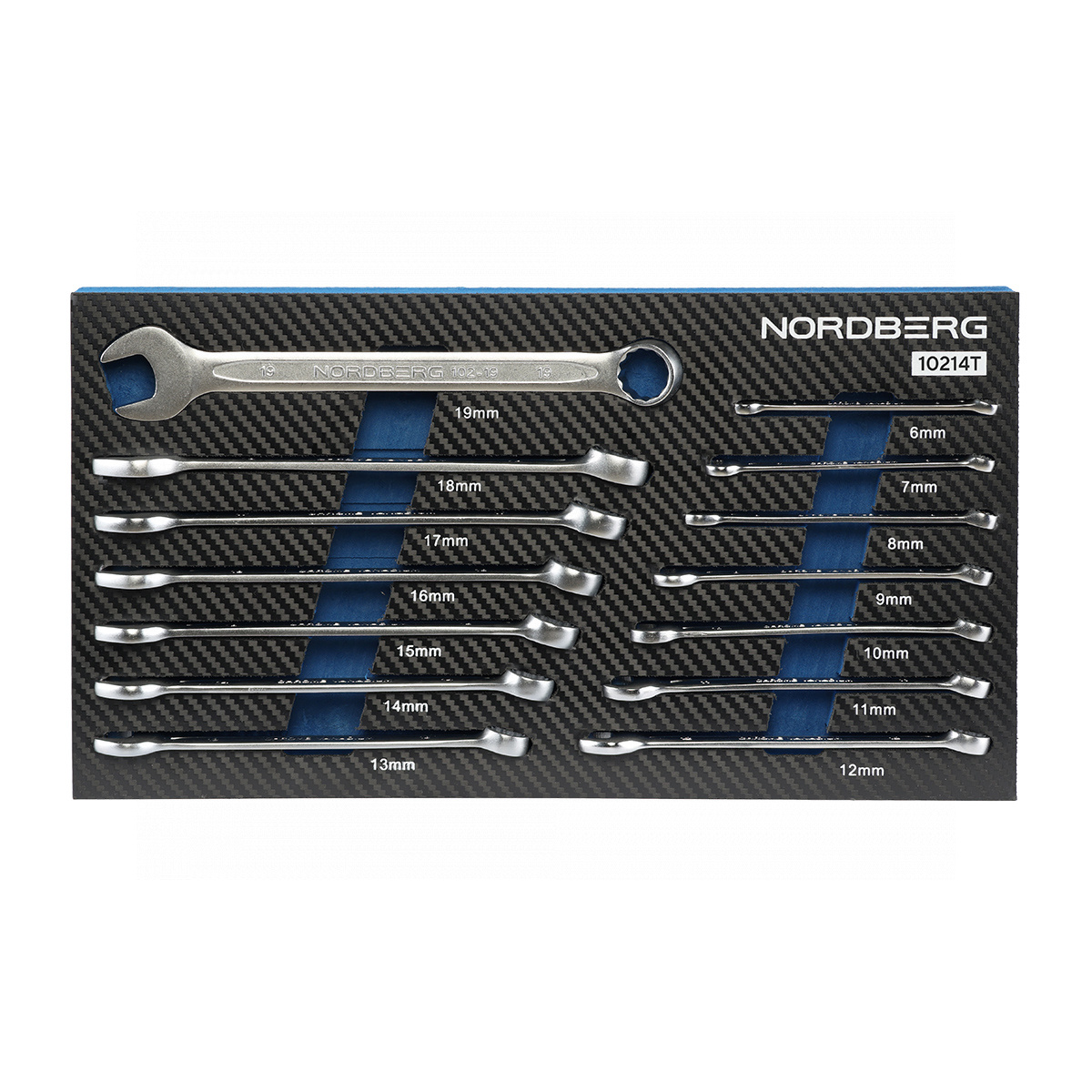 Набор ключей комбинированных в ложементе, 14 предметов для тележки NORDBERG 10214T