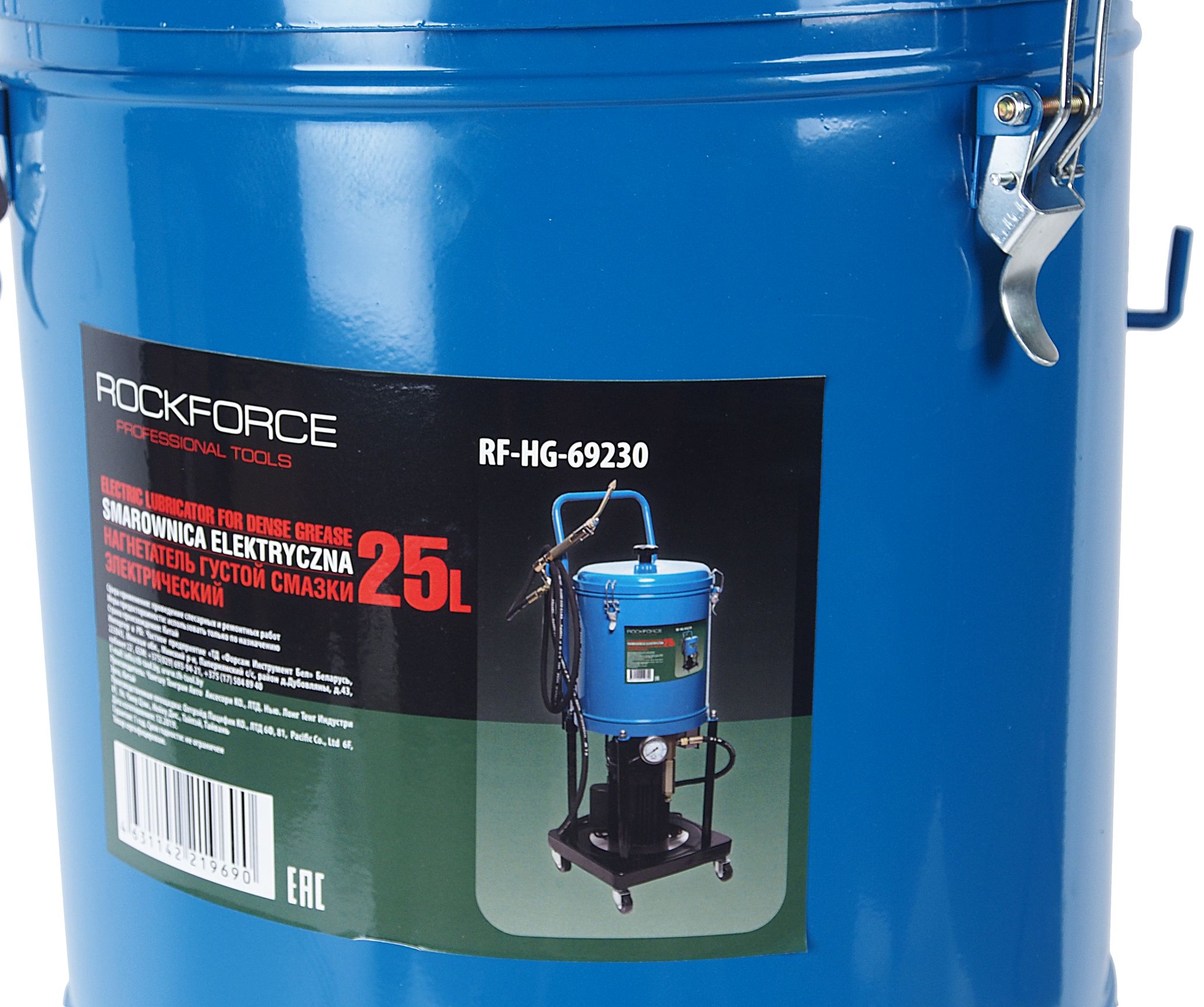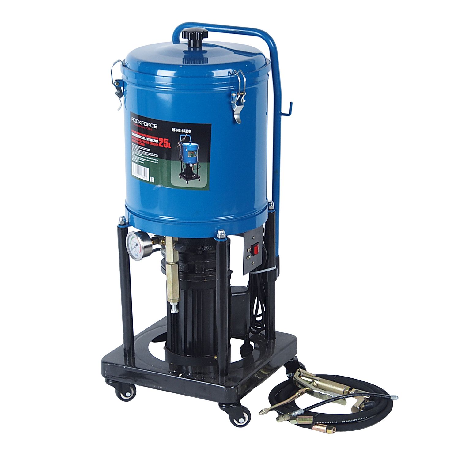 Нагнетатель смазки RF-HG-69230 густой электрический 25л,220V,1,1кВт,0,35 л/мин,250-400 Bar,длина шланга 4м,раб.t-10гр.+50гр) ROCKFORCE /1/20