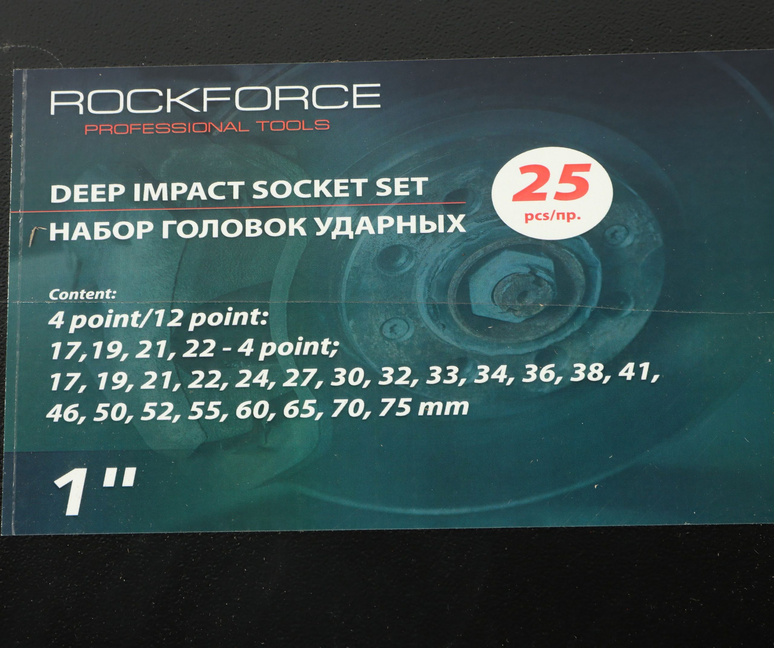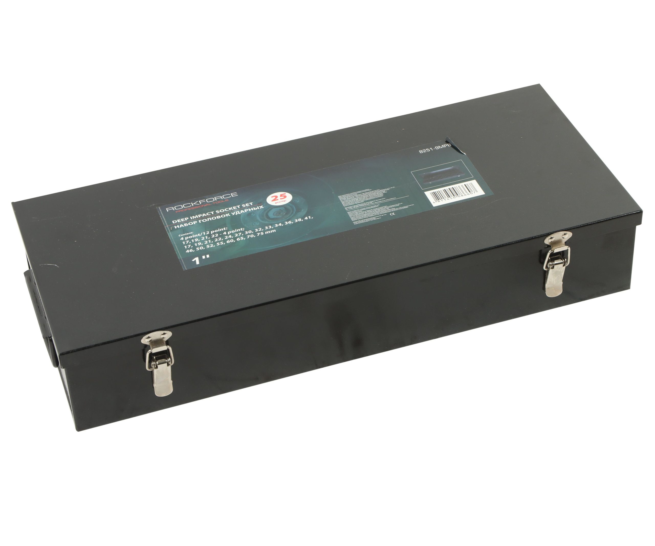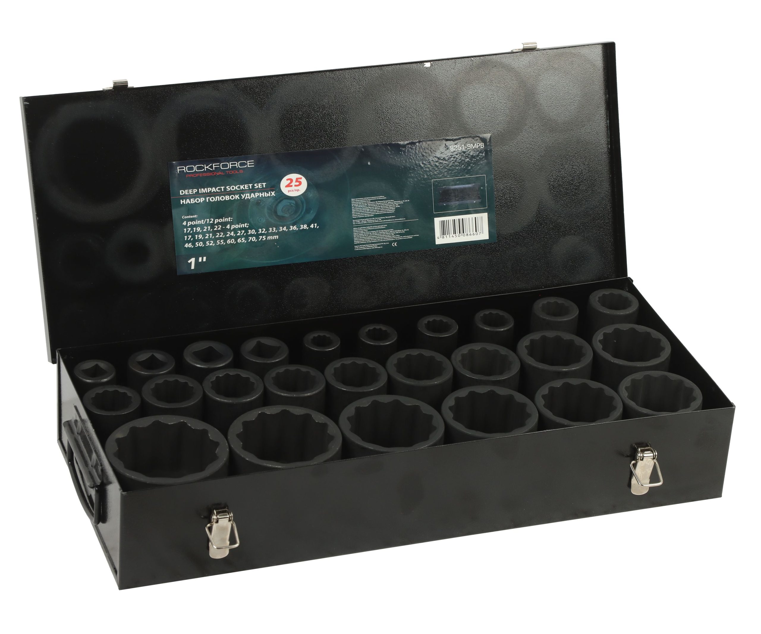 Набор головок RF-8251-9MPB ударных глубоких 25пр., 1″ 12гр. (17,19,21,22,24,27,30,32,33,34,36,38,41,46,50,52,55,60,65,70,75мм), в кейсе ROCKFORCE /1