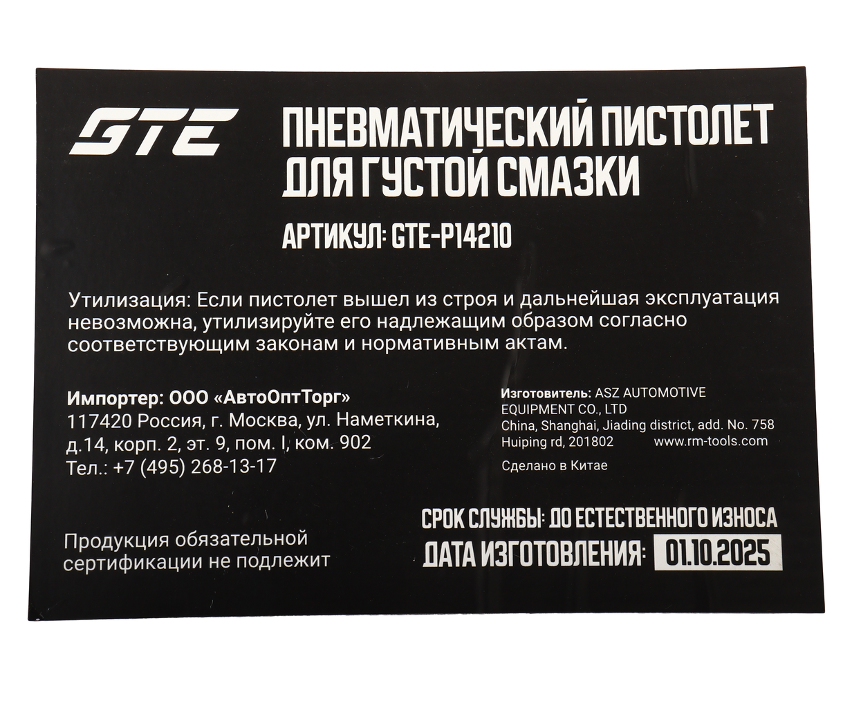 Пневмопистолет для раздачи густых смазок GTE-P14210 позволяет быстро производить смазывание различных механизмов или узлов под высоким давлением.