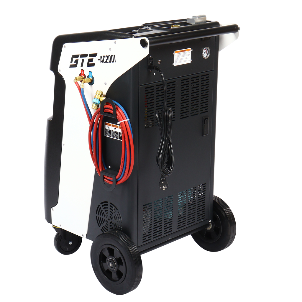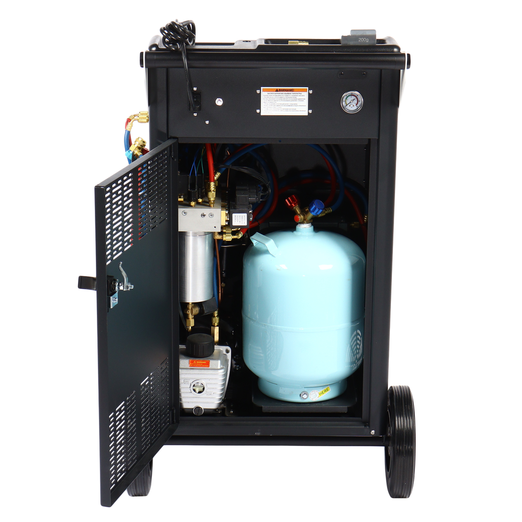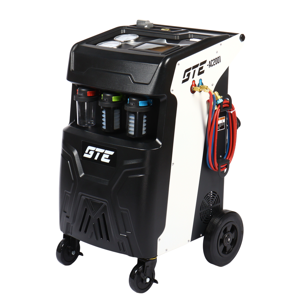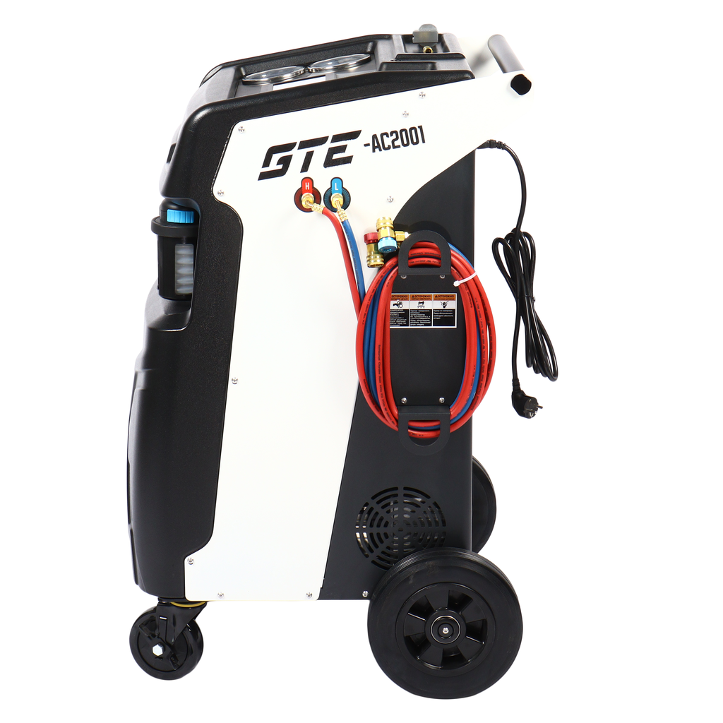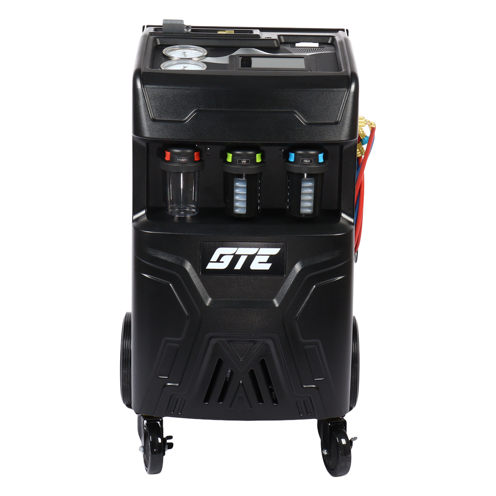 Универсальная автоматическая установка GTE-AC2001, применяется для заправки и диагностики систем кондиционирования автомобилей. Установка работает с фреоном R-134a и обеспечивает автоматизацию следующих операций: запуск и остановка рекуперации хладагента, вакуумирование системы, запуск и остановка заправки масла по времени, а также заправка хладагента по электронным весам.