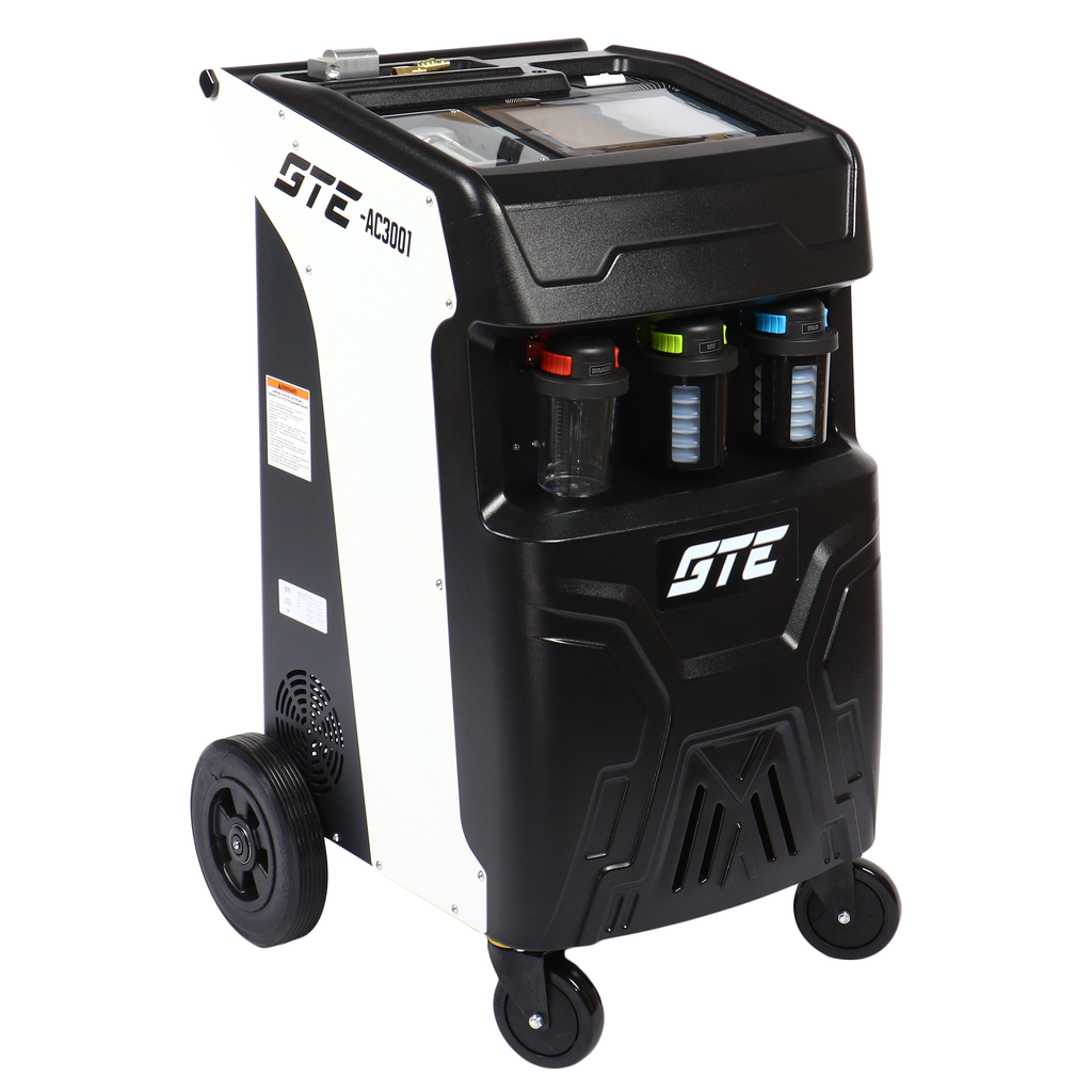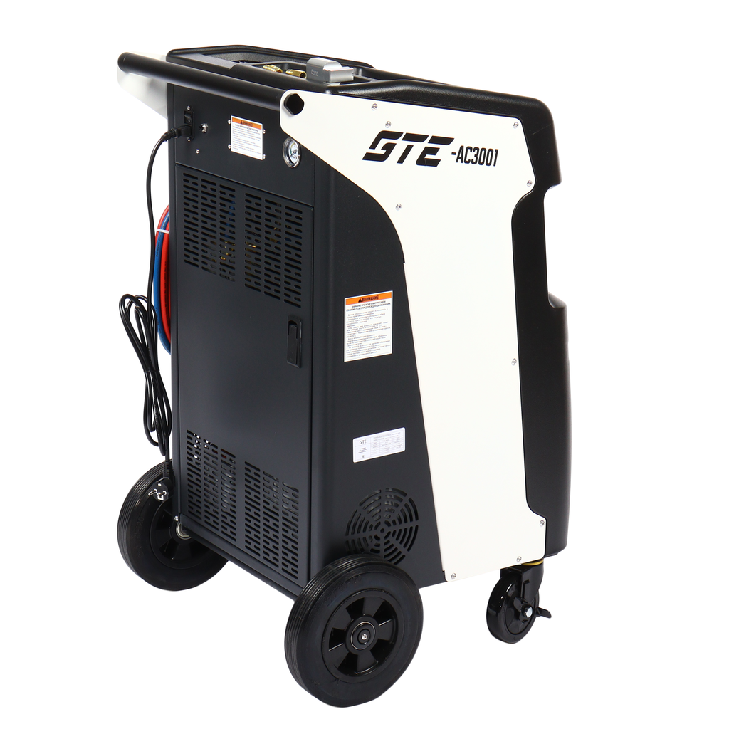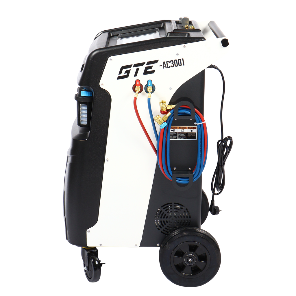 Универсальная автоматическая установка GTE-AC3001, применяется для заправки и диагностики систем кондиционирования автомобилей. Установка работает с фреоном R-134a и обеспечивает автоматизацию следующих операций: запуск и остановка рекуперации хладагента, вакуумирование системы, запуск и остановка заправки масла по времени, заправка хладагента по электронным весам, промывка системы автомобиля.