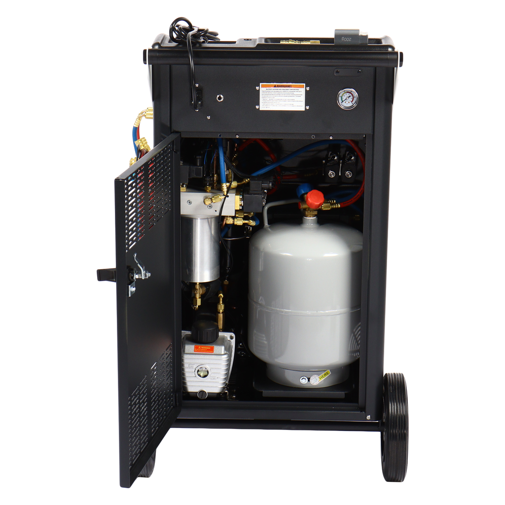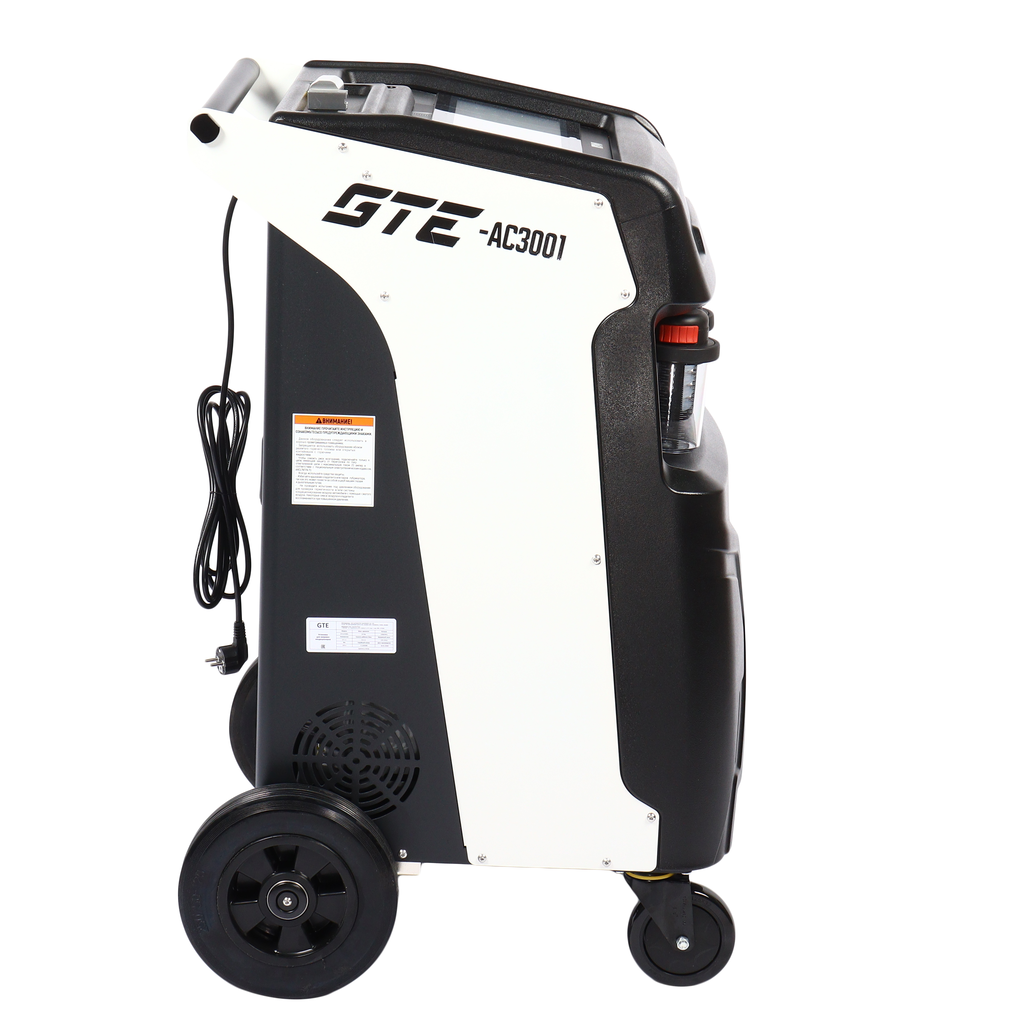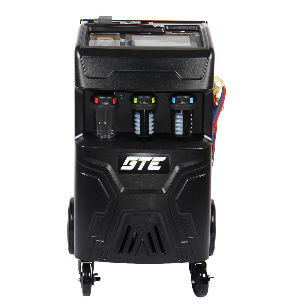 Универсальная автоматическая установка GTE-AC3001, применяется для заправки и диагностики систем кондиционирования автомобилей. Установка работает с фреоном R-134a и обеспечивает автоматизацию следующих операций: запуск и остановка рекуперации хладагента, вакуумирование системы, запуск и остановка заправки масла по времени, заправка хладагента по электронным весам, промывка системы автомобиля.