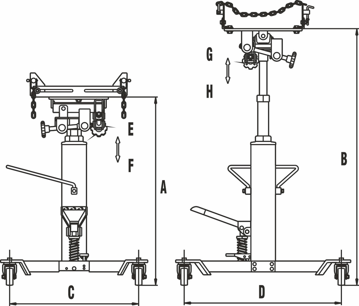 Гидравлический насос с ножным приводом обеспечивает контроль подъема агрегата.