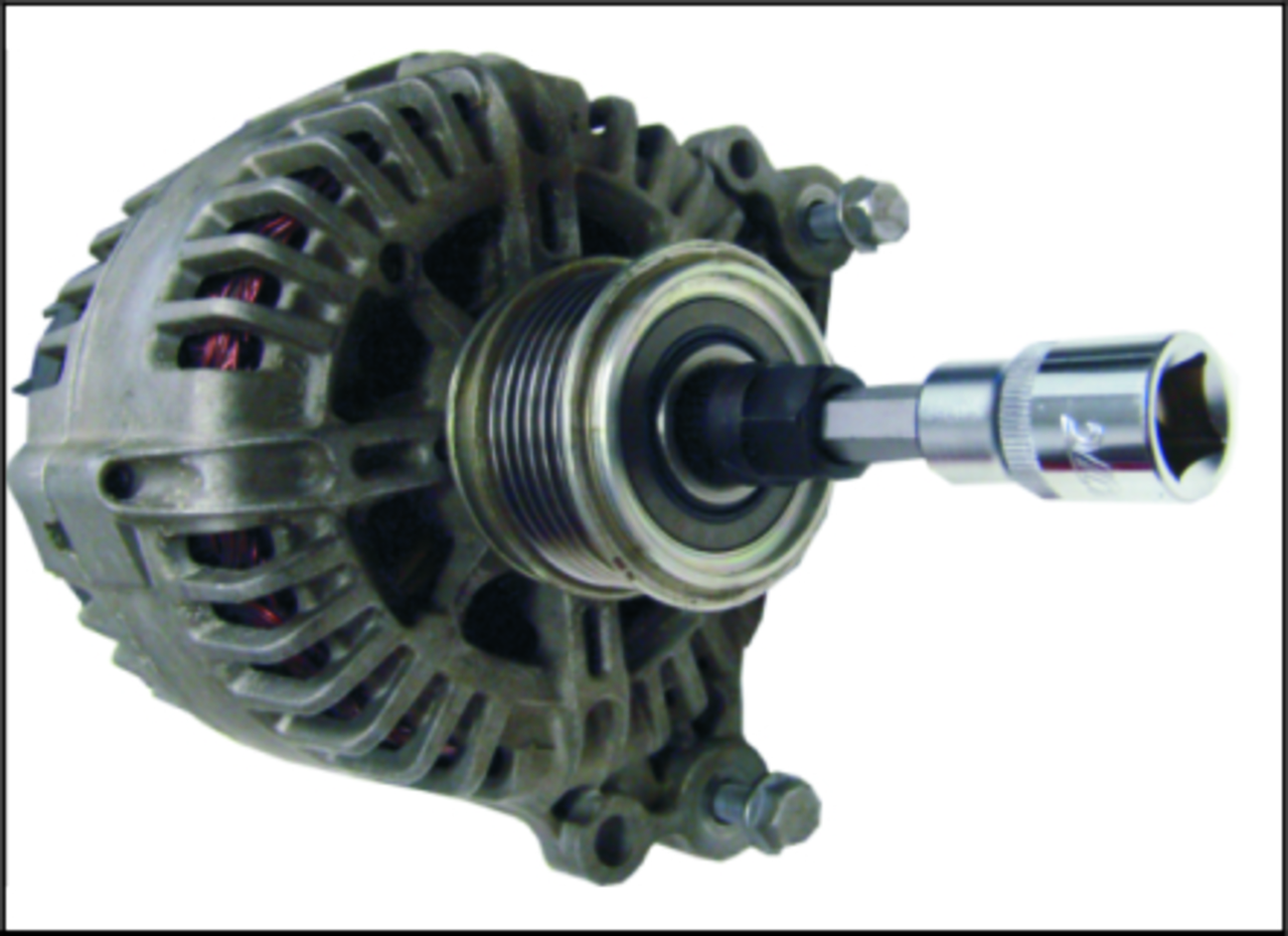 Специальная конструкция ударной головки с удлинителем предназначена для снятия муфты свободного хода при замене генератора или его шкива.