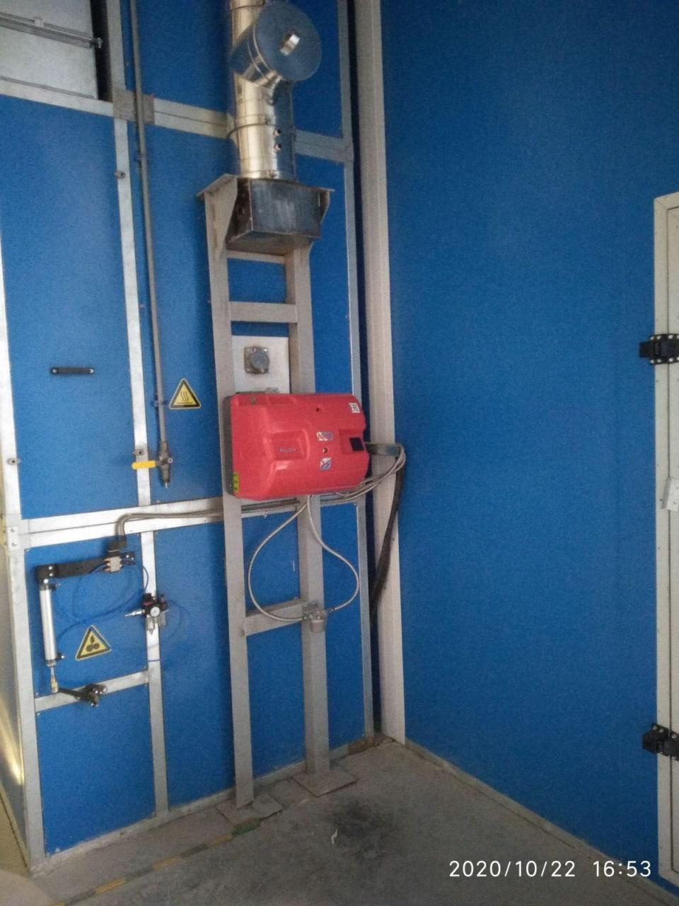 В камере поддерживается постоянная температура +60≈80⁰С в зависимости от применяемой краски и установленных пластмассовых деталей автомобиля.