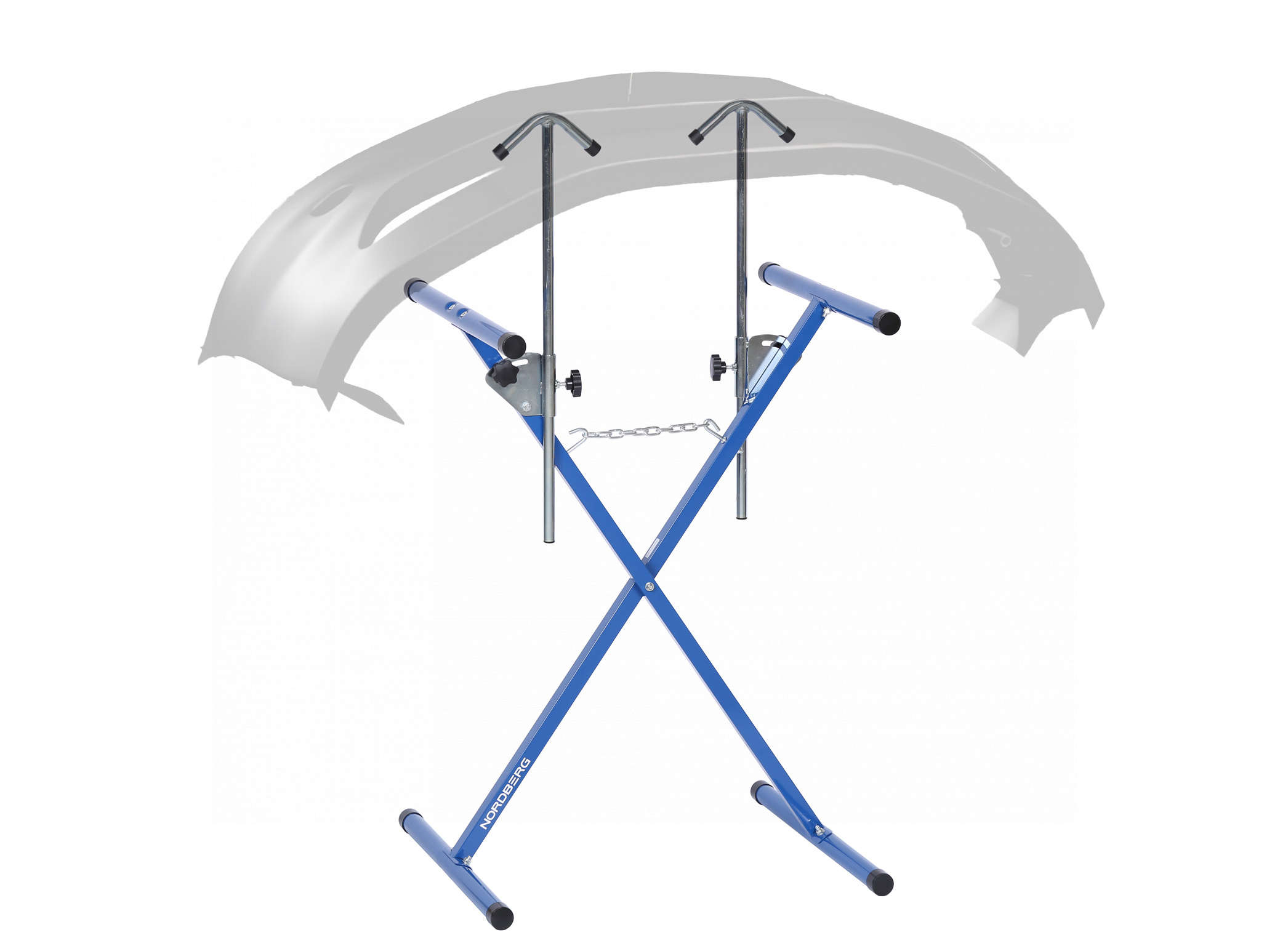 Х-образный регулируемый по высоте и ширине стенд с дополнительными регулируемыми держателями, обеспечивает более устойчивое положение и удобство обработки кузовной детали при проведении арматурных и малярно-кузовных работ с кузовными деталями автомобиля.