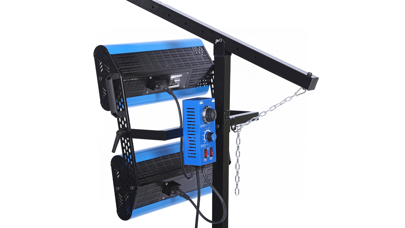 - Стойка с механической системой изменения высоты и угла наклона дает возможность установить лампы на требуемой высоте