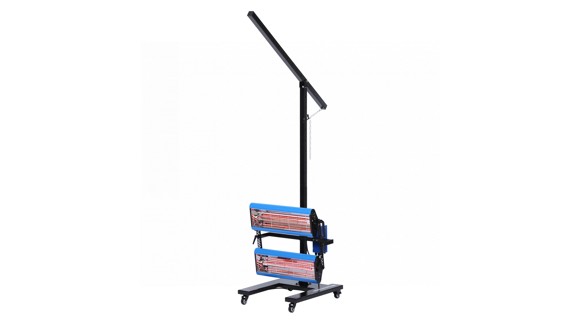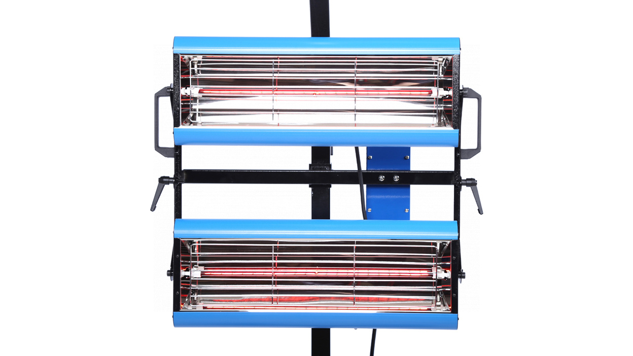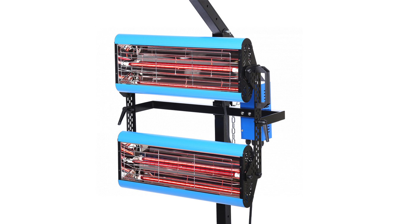 - Два нагревательных элемента общей мощностью 2,6 кВт, находящиеся в двух излучателях, обеспечивают направленный нагрев окрашенной или обработанной другими материалами поверхности за короткий промежуток времени