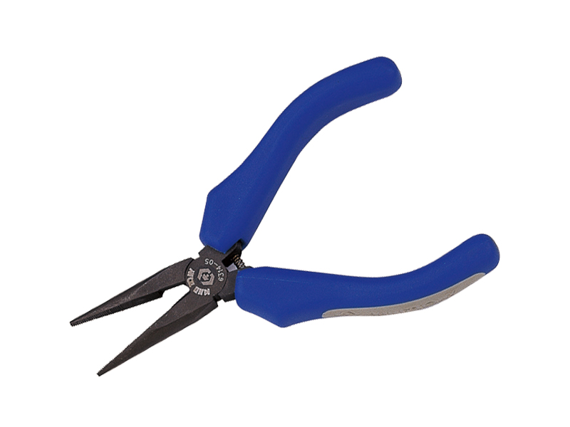 -Плоскогубцы удлиненные. Тип прямой, мини. С возвратной пружиной. Режущие кромки подвергнуты индукционной закалке, благодаря чему, остаются острыми длительное время. Соответствует стандарту DIN5745