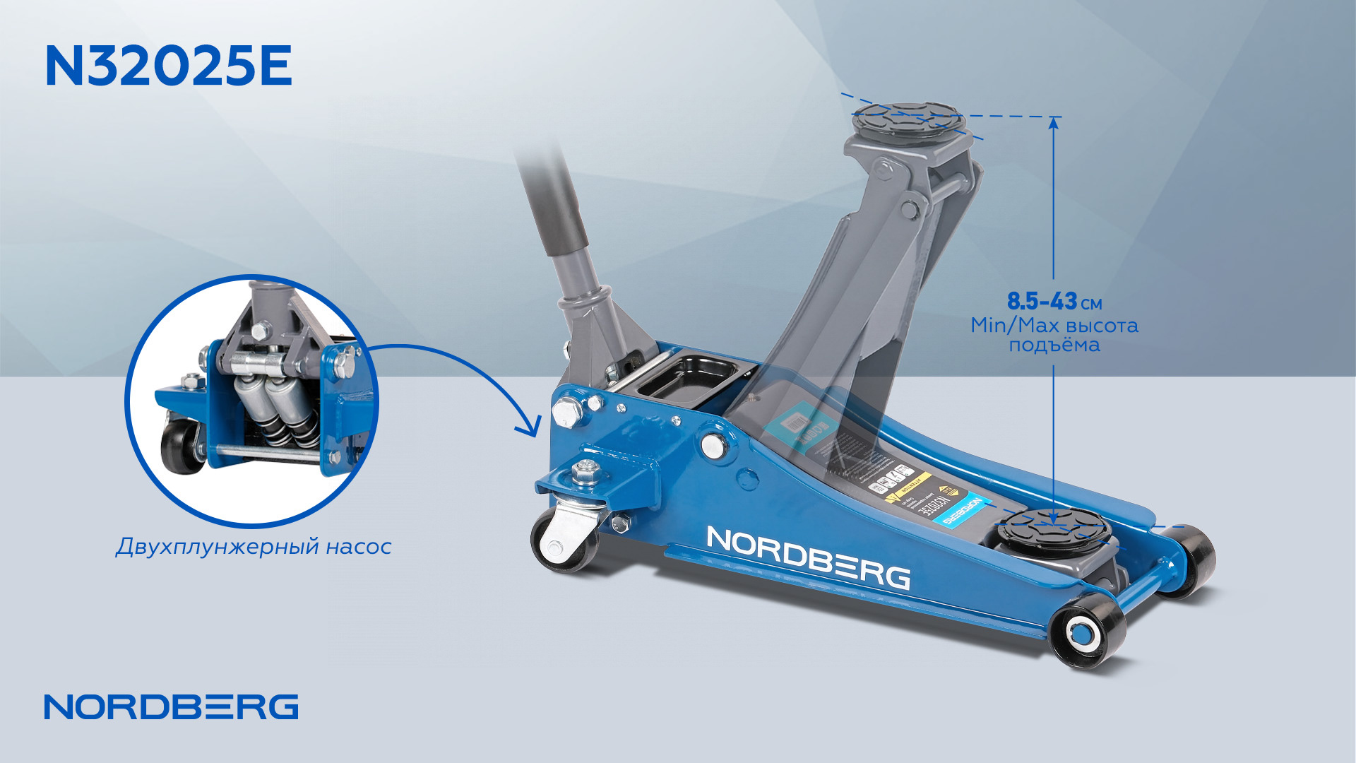 Гидравлический подкатной домкрат NORDBERG N32025E – профессиональное подъемное оборудование для автосервисов, шиномонтажных мастерских и автосервисных предприятий.